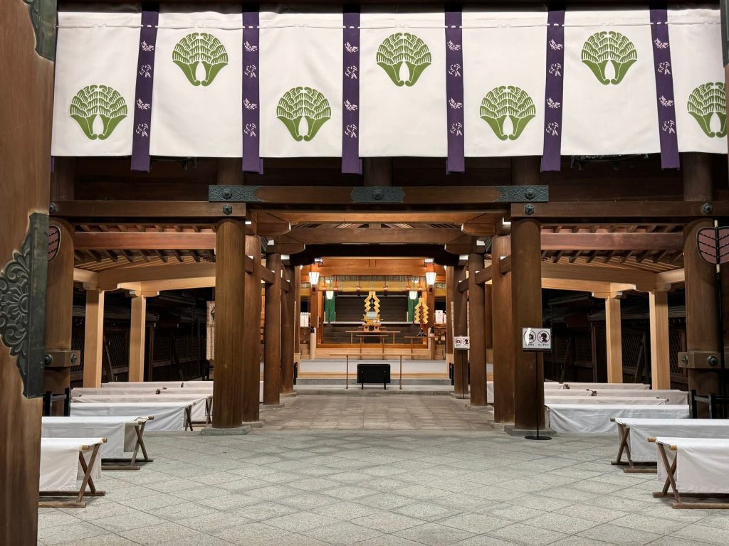 また今回の事業にあわせ、佐賀干支の会丑年会会長枝國五雄様からは、拝殿正面を飾る菊花御紋章も鮮やかな幕をご献納頂きました。
