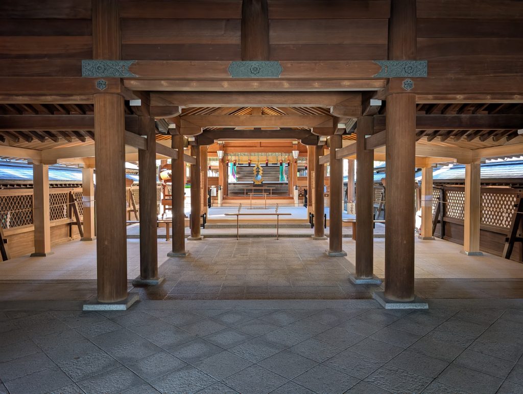 ③拝殿と旧幣殿を一体化して拝殿を拡張、拝殿の収容人員を増やし、祭典時や祈祷などの参拝者がより近くから本殿を拝せるように配慮。