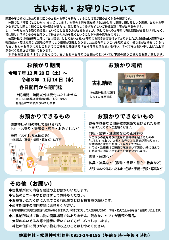 ※15日以降は通常のお札・お守りのみ社務所にてお預かりいたします。