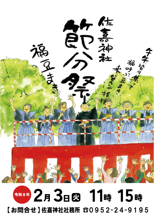 お知らせ お祭り 令和8年節分祭 2026年1月22日 ※本年より一般の方の撒き手は募集しておりません。※節分祭福豆まきは午前11時・午後3時の2回です。 カテゴリ すべて お祭り お知らせ 授与品 最近の記事 令和8年節分祭 (01/22) 正月古札納所開設は終了しました (01/15) 【お知らせ】1月後半のご祈願について (01/14) 古いお札・お守りについて (01/09) ホームページを一部調整しています (01/09) 1月の祭典・行事・催事のご案内 (12/31) 【お知らせ】1月前半のご祈願について (12/24) ご鎮座100年啓発看板を設置しました (12/21) 御煤払祭を執り行いました (12/20) 大鳥居の修理を行っています (12/16) 過去記事 2026年 2025年 2024年 2023年
