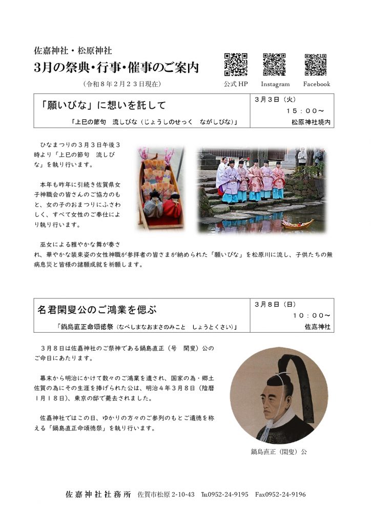 なお、佐嘉神社・松原神社についてご不明の点はお電話・メールにてお問い合わせ下さい。