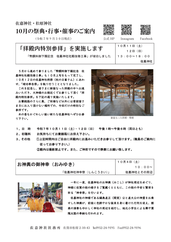 秋の日峯さんご案内はこちらhttps://sagajinjya.jp/2025/09/10/%e4%bb%a4%e5%92%8c7%e5%b9%b4%e7%a7%8b%e3%81%ae%e6%97%a5%e5%b3%af%e3%81%95%e3%82%93
